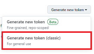 右上のGenerate new token→Generate new token(classic)クリック